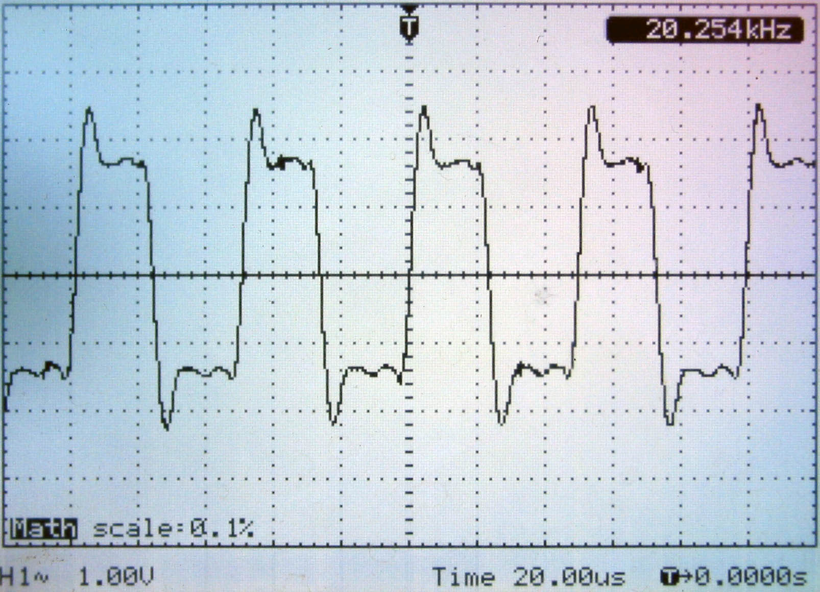 下面贴出整机也就是包含推动牛在内的,8欧姆喇叭端实测输出波形: