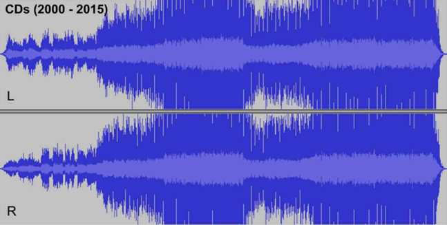 16 位光盘的理论动态范围约为 96 dB,20 位量化的数字音频理论上能够提供 120 dB 的动态范围,而 24 位数字音频提供 144 dB 的动态范围。大多数数字音频工作站都使用 32 位浮点表示来处理音频,这提供了更高的动态范围,因此在数字音频处理方面,动态范围不再是问题。然而,事实上的音乐碟片,动态范围很低,动态范围的限制通常是由于增益分级不当、记录技术(包括环境噪声)和有意应用动态范围压缩造成的。这些母盘工程师的有意行为,影响或造就了一代“音响迷”,不知道现场音乐尤其是古典音乐演出现场,宽广的动态范围令人如此振奋。
