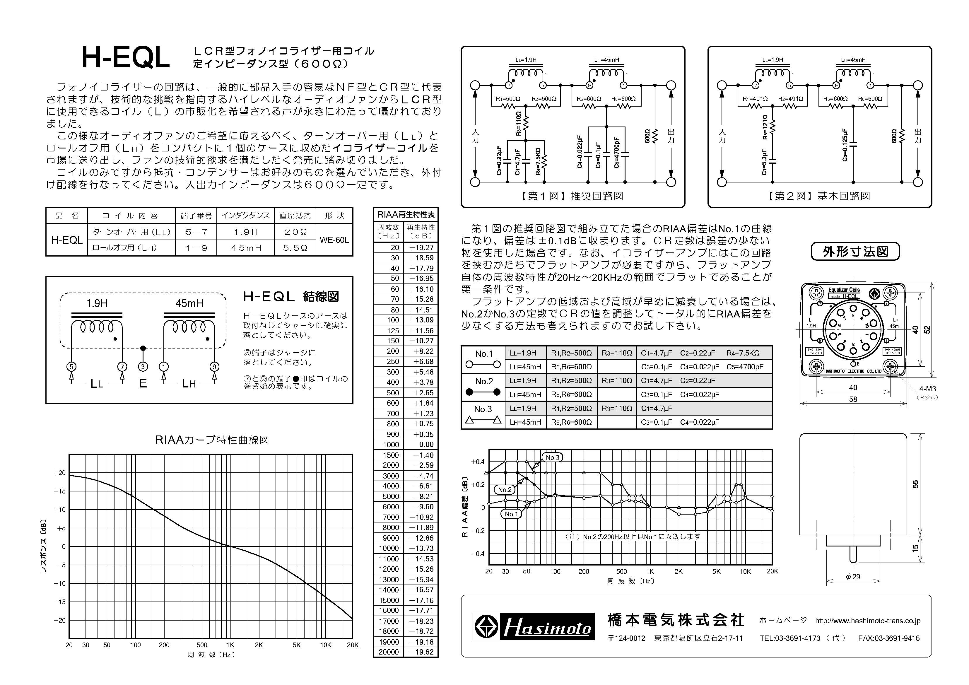 此外还有一些其他品牌的EQ均衡电感,基本是在Tango EQ-2L基础上演变,参数可能有一点出入,但相差不多。本人试验了各种LCR元件参数的组合和变化,发现大多是在自家的电路基础上设定的元件数值,比如EQ-600P的元件参数,是建立在这个电路基础上的结果: