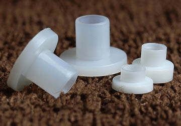 安装上虽然有些麻烦,但基本上可以减少嗡嗡声的发生。图中的“PVC减震垫”也可以用尼龙T型垫代替,看下面这个样子,穿螺丝的部位需要根据机壳厚度自行裁短,以便能安装到位。