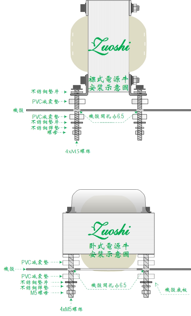 关于电源变压器的安装:有时候会出现这样的现象,变压器单独通电的时候,不响不叫,一旦安装到机壳上面,会有很大的嗡嗡声。这是怎么回事呢?这是共振,机壳变成“声放大器”,这跟机壳强度有关,尤其是比较薄且强度不够的铁板机壳,或者不足3mm左右的铝板机箱。有的机壳虽然用料不厚,但是有加强筋,或内部有一体的多槽支撑板等,比如内部分割成几个腔室,这明显的增加了机壳强度。产生共振的可能性较低。对于机壳已经定型,如何减少共振的发生,需要合理的把变压器与机壳“机械隔离”,也就是,从本质上讲,变压器包括安装螺丝,与机壳之间没有直接连接的地方(电阻表测试绝缘不通),都是通过减震垫连接。请参考下图: