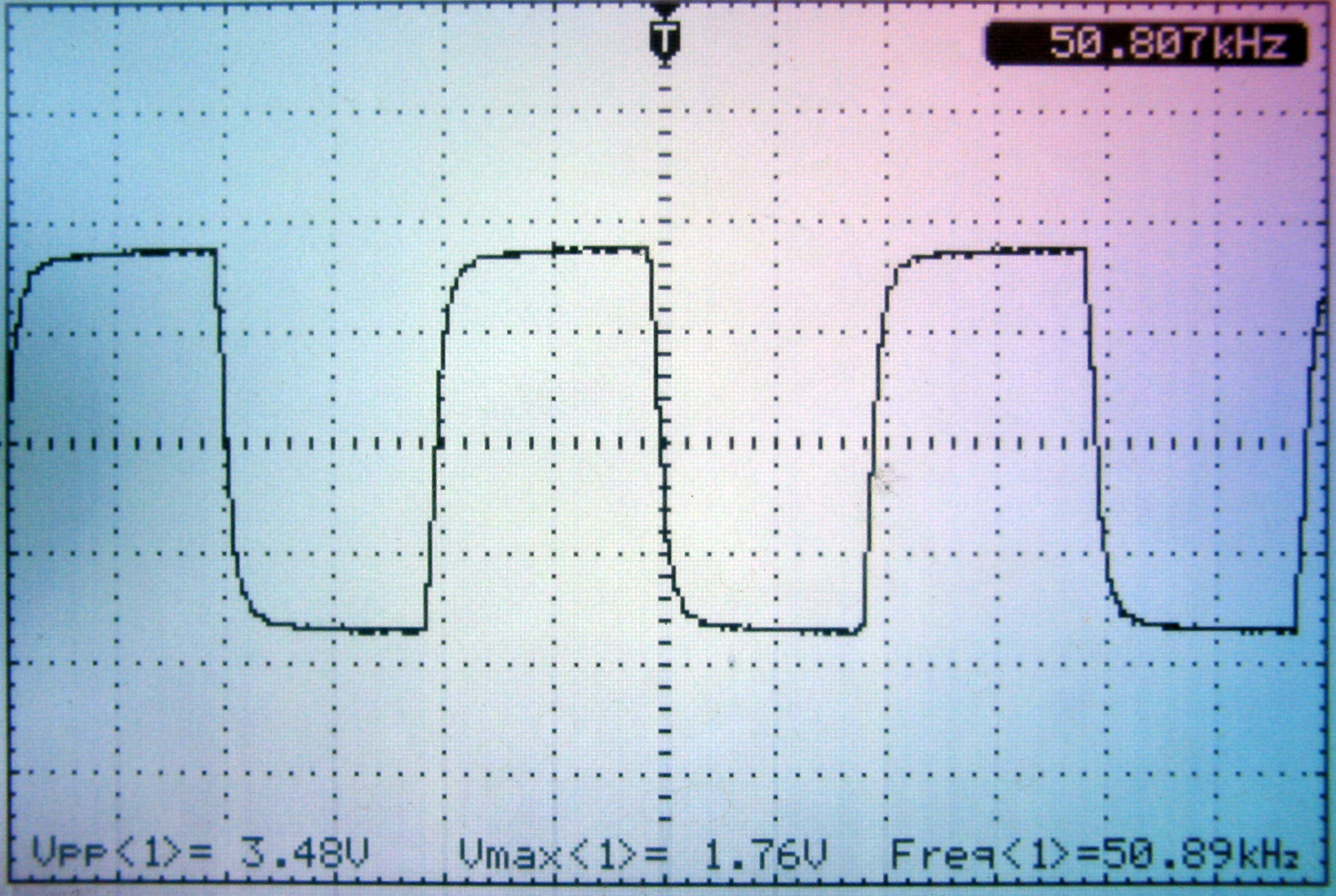 下面是100Hz-50kHz方波输出,所有抽头输出方波特性几乎相同,且到50kHz方波依然漂亮,说明总谐波失真非常低。