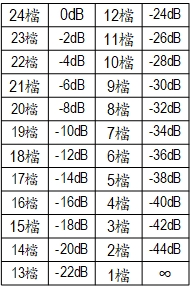 下面具体的测试一个24档音量牛,看一下实际情况,先看一下各抽头衰减量: