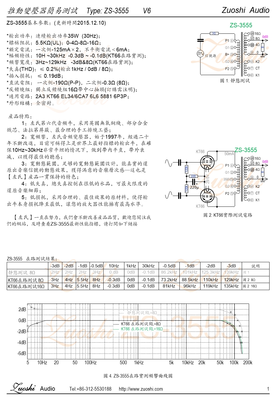 左氏☆ 幅频特性:20Hz ~ 20kHz -0.25dB ~ -0.15dB(KT66在路实测);左氏