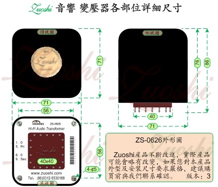 左氏1:左氏第六代音频牛,采用英国无氧铜线OFC/单晶铜线OCC、高导磁铁芯Hi-B Core/坡莫合金铁芯Permalloy Core/非晶铁芯Amorphous Core/纳米晶铁芯Nanocrystalline Core、最合理的手工排绕工艺;左氏