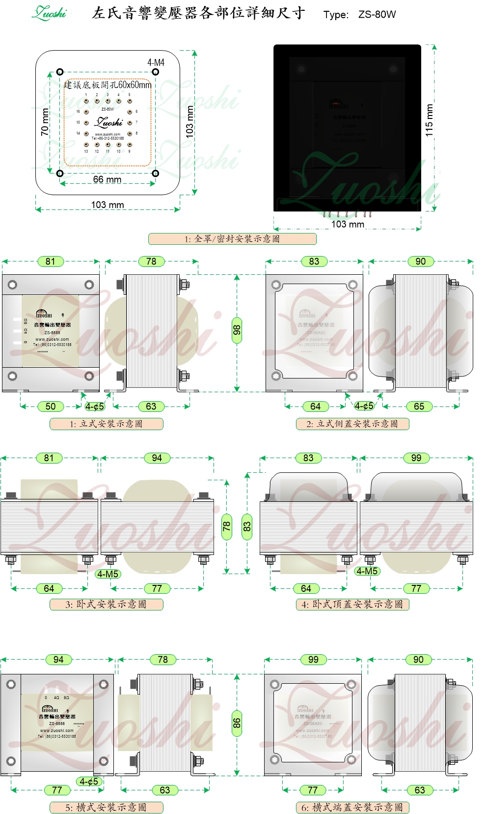ZS-80W 通用电源变压器。