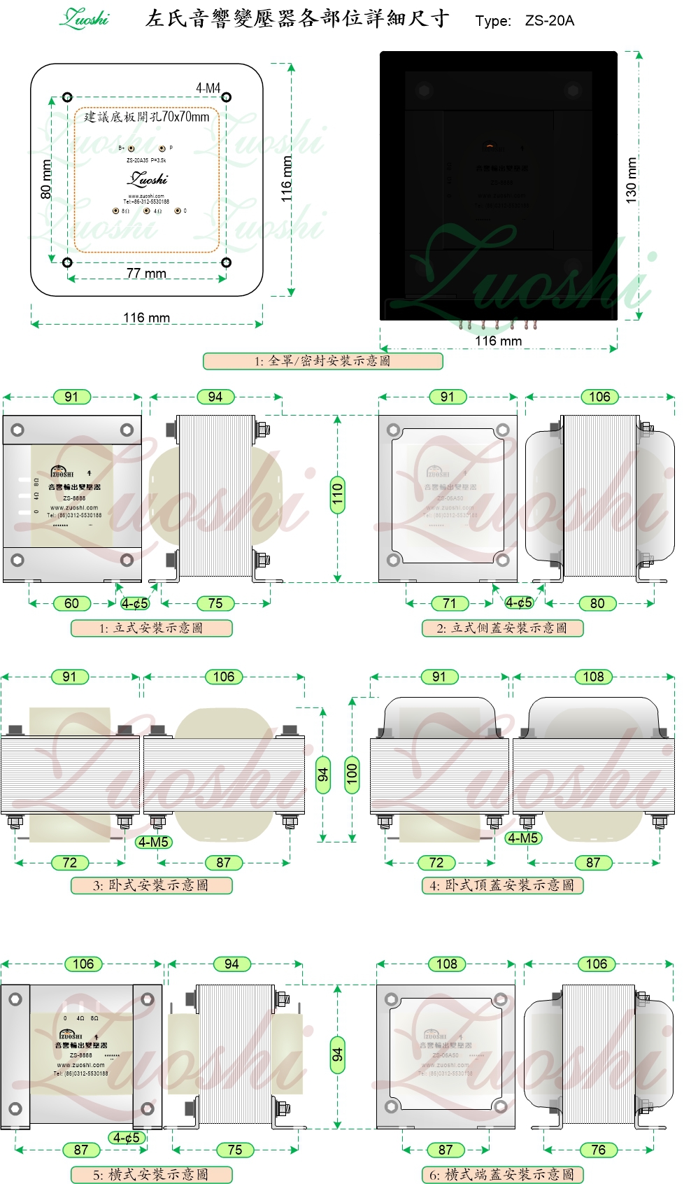 左氏☆ 标称阻抗:3.5KΩ:0-4Ω-8Ω (或3.5KΩ:0-8Ω-16Ω );左氏