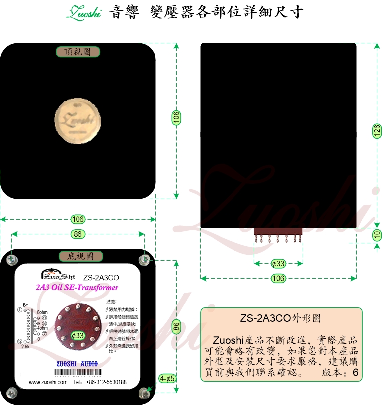 左氏6. 左氏变压器采用超宽频响、超大动态范围设计,升级后高低频延伸、动态效果会有很大的改进。