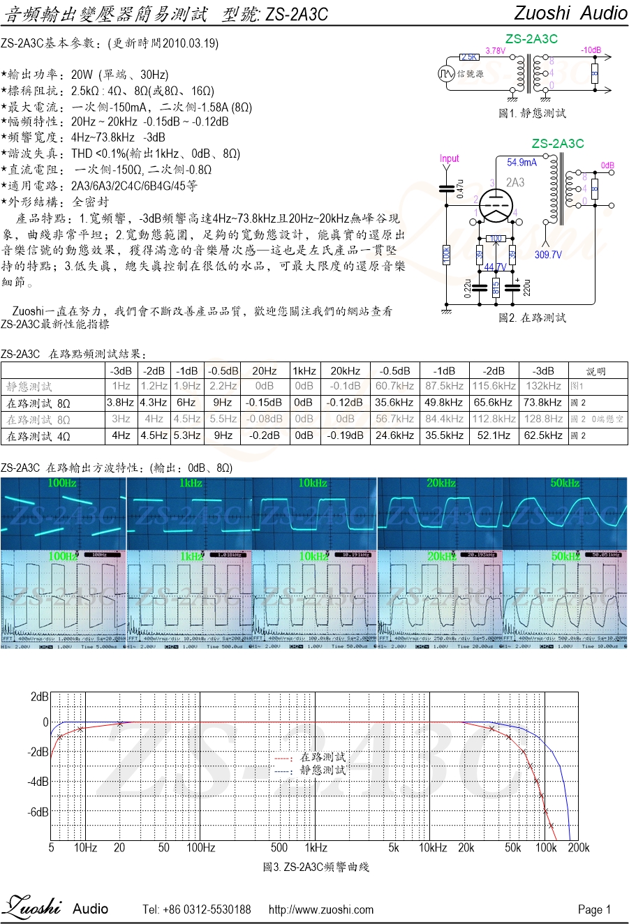 左氏☆ 幅频特性:20Hz~20kHz -0.25dB ~ -0.2dB(2A3在路实测);左氏