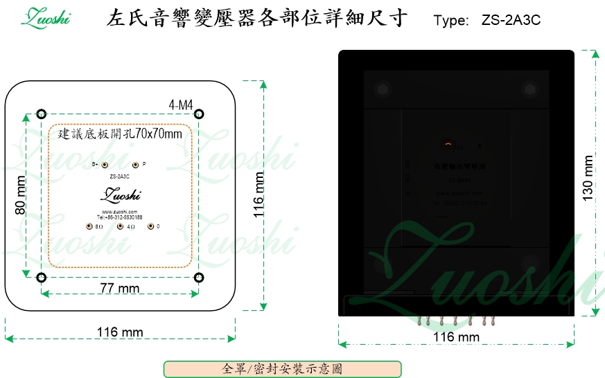 左氏☆ 标称阻抗:2.5KΩ:0-4Ω-8Ω (或2.5KΩ:0-8Ω-16Ω);左氏