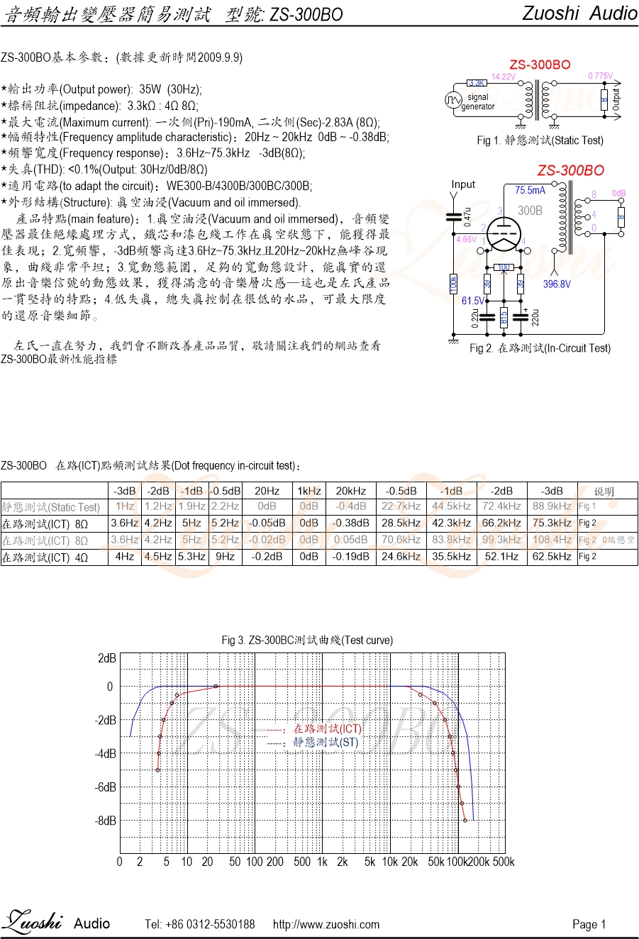 左氏☆ 幅频特性:20Hz~20kHz -0.25dB ~ -0.2dB(300B在路实测);左氏