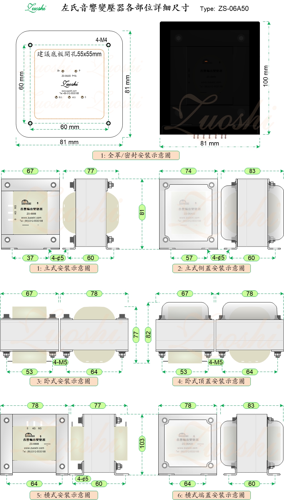 左氏☆ 标称阻抗:5KΩ:0-4Ω-8Ω (或5KΩ:0-8Ω-16Ω);左氏