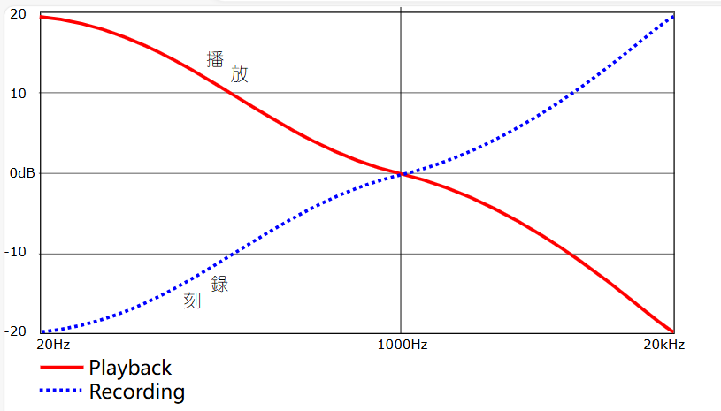 美国唱片业协会(RIAA)制定了留声机唱片录制和播放规范。均衡曲线(见下图)旨在作为事实上的全球记录行业标准。