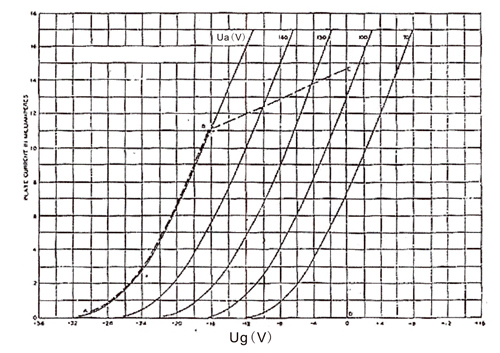 Figure 3. shown typical curves of plate currents of grid voltage for several values of plate voltages. It is alternating-current filament supply.